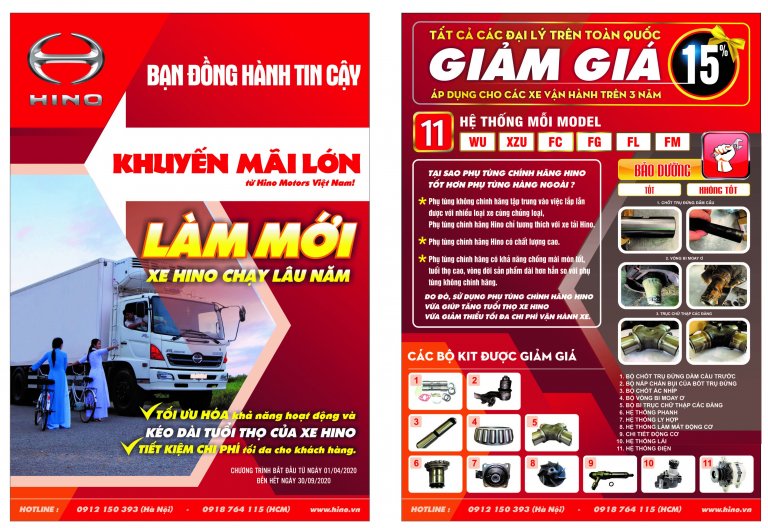 Với mục đích tối ưu hóa khả năng sử dụng, kéo dài tuổi thọ của xe, mang lại giá trị và lợi ích tối đa cho Khách hàng của Hino bằng những dịch vụ tốt nhất, linh kiện chính hãng chất lượng cao nhất đồng thời củng cố niềm tin của khách hàng đối với Hino – thương hiệu xe tải đến từ Nhật Bản, Hino Motors Việt Nam triển khai chương trình khuyến mãi “Làm mới xe Hino chạy lâu năm”.